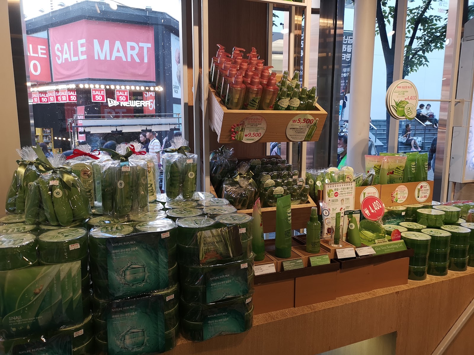 Kedai make up (skincare) pertama yang kami jejak ialah Nature Republic. Nak cari facial mask murah kat sinilah. 40 peket cuma 19,000 won (RM70.50) sahaja. 1 keping tak sampai 2 hengget pon.